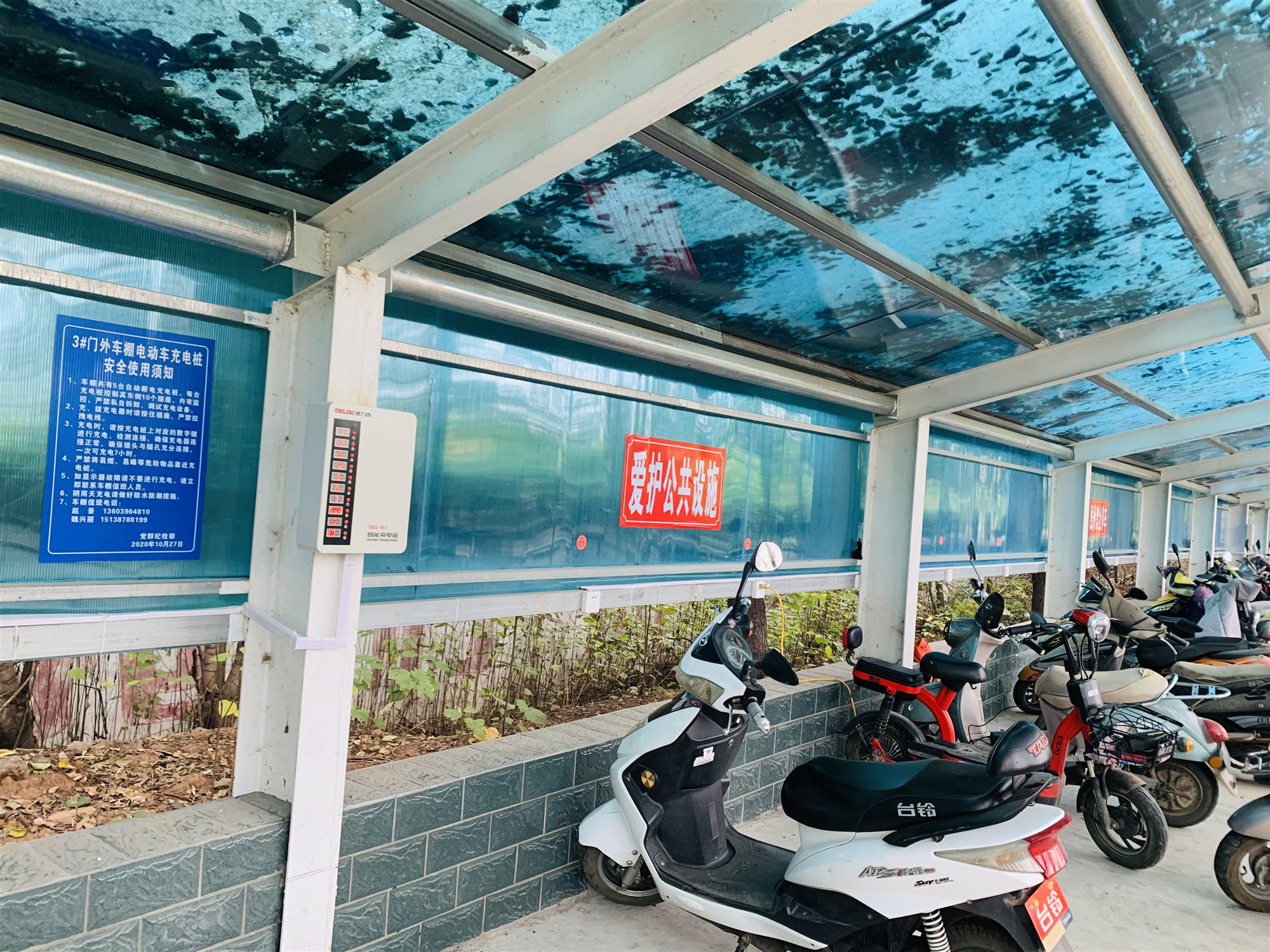 公司3#電動(dòng)車棚總面積有400多平方米,主要停放公司職工及外來人員電動(dòng)車,前期建設(shè)時(shí),由于沒有考慮安全要求,車棚內(nèi)部充電設(shè)施沒有自動(dòng)斷電裝置,消防安全隱患極大,一旦發(fā)生火災(zāi),后果及損失不堪設(shè)想。為此,黨群紀(jì)檢部在克服沒有專業(yè)電工人員的情況下,經(jīng)多方協(xié)調(diào)及努力將3#車棚進(jìn)行智能化改造,統(tǒng)一安裝集中充電斷電裝置。截止目前,該車棚的集中充電斷電裝置已經(jīng)安裝完畢投入使用。