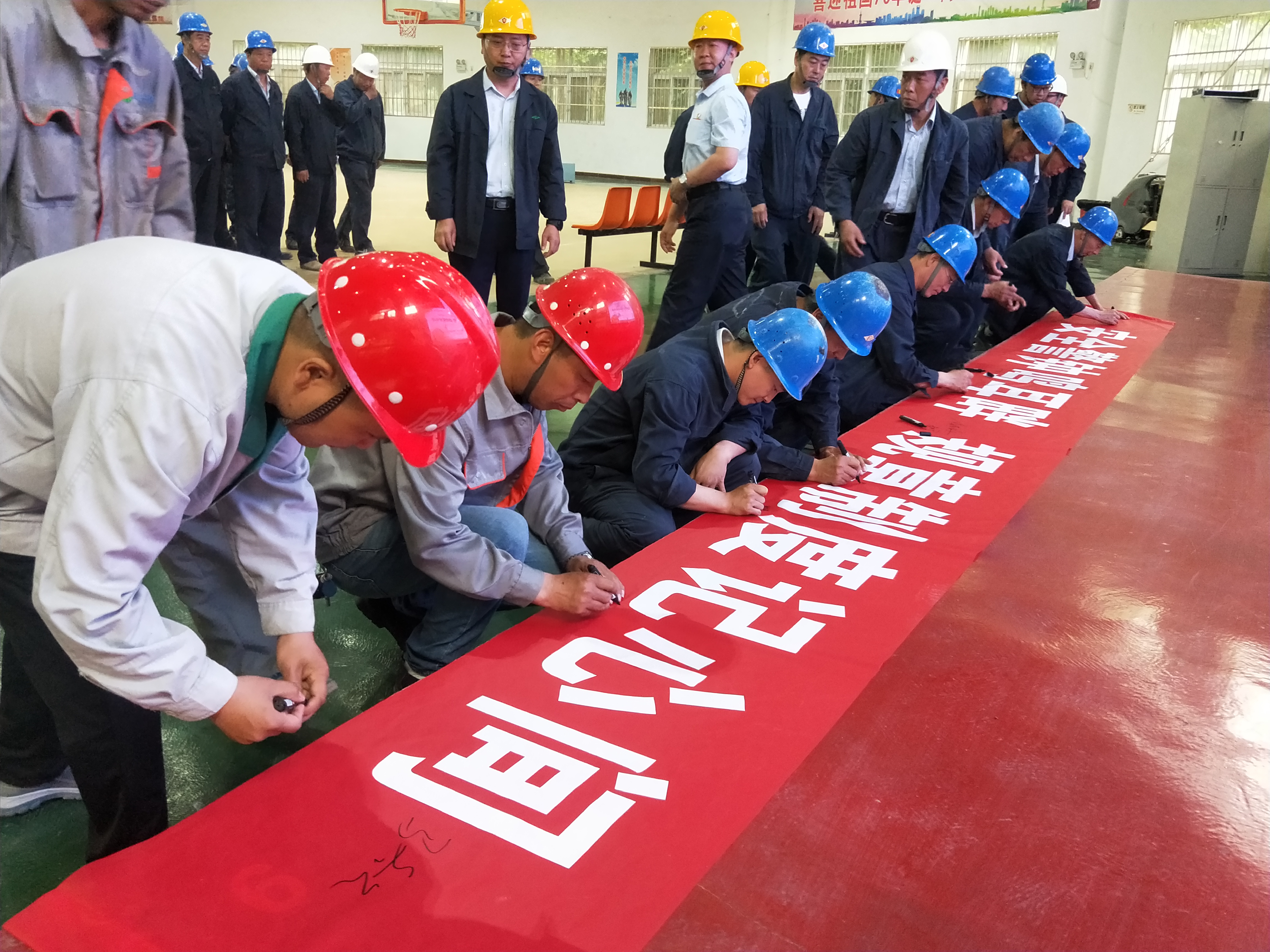 黃河同力副總經(jīng)理陳克政宣布黃河同力“安全生產(chǎn)月”啟動(dòng)儀式正式開始。全體人員在安全標(biāo)語(yǔ)紅幅上簽名。