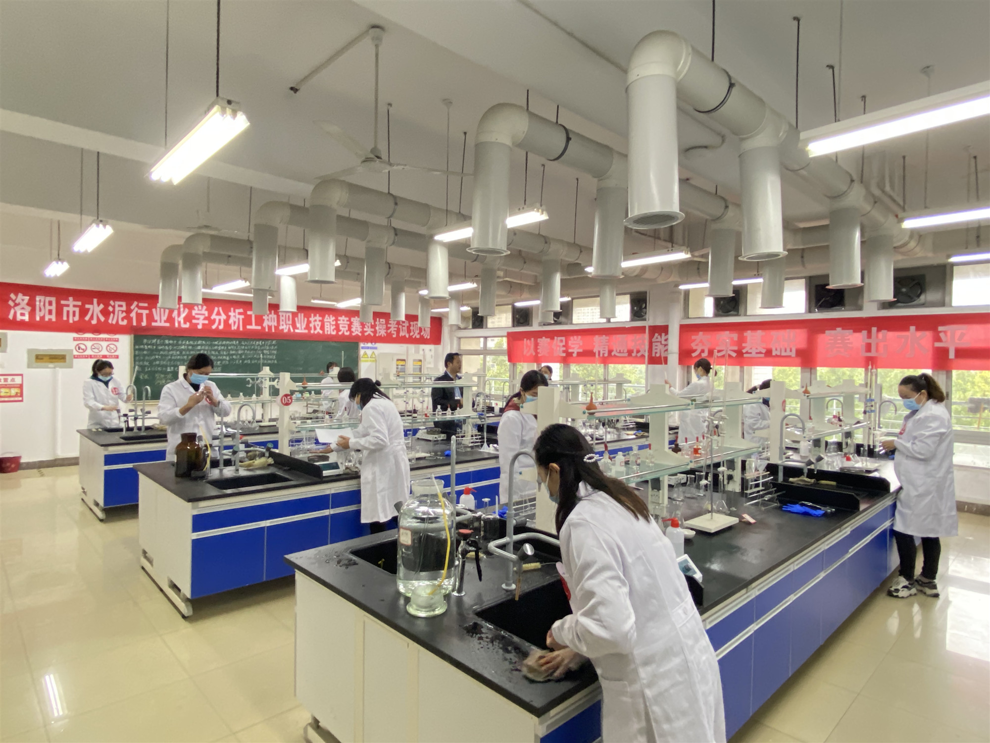 本次競(jìng)賽包括理論知識(shí)考試和實(shí)際操作考試兩部分,理論知識(shí)考試采用閉卷方式進(jìn)行,實(shí)際操作考試在洛陽理工學(xué)院環(huán)化學(xué)院實(shí)驗(yàn)中心進(jìn)行,實(shí)操主要設(shè)有測(cè)定水泥中的氧化鈣、氧化鎂、三氧化二鐵、三氧化二鋁、二氧化硅的含量等多項(xiàng)考核內(nèi)容。