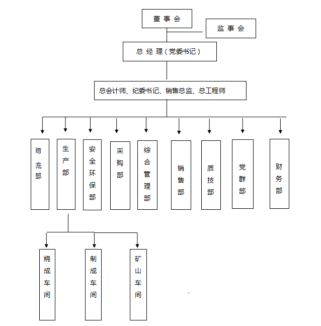 三門峽騰躍同力水泥有限公司位于河南省澠池縣境內(nèi),地處晉、陜、豫三省交匯處,緊靠連霍高速公路、310國(guó)道,交通便利。公司總面積274175.46m2,公司類型為一人有限責(zé)任公司。公司實(shí)行董事會(huì)領(lǐng)導(dǎo)下的總經(jīng)理負(fù)責(zé)制,下設(shè)綜合管理部、生產(chǎn)部、財(cái)務(wù)部、采購部、市場(chǎng)部、銷售部、物流部、質(zhì)量技術(shù)部、安全環(huán)保部、黨群部。生產(chǎn)部下設(shè)燒成車間、制成車間、礦山車間。